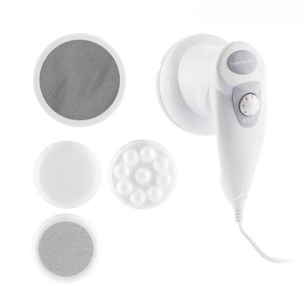 • 🛠️ 4 cabezales intercambiables: Anticelulítico, masaje, drenante y exfoliante, para un tratamiento completo de piernas, glúteos, abdomen, brazos e incluso pies.